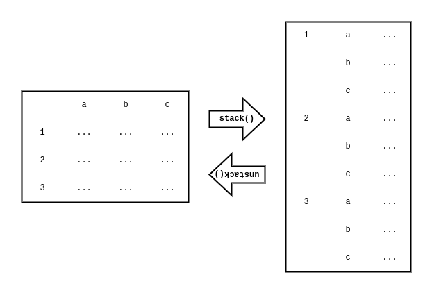 ただ、Seriesが横に増えても使いにくいだけなので、さらにstack()を用いてカラムを「縦」に展開する。